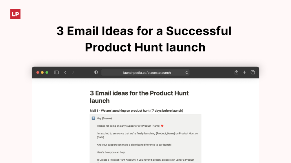 Created a 3-step email sequence that warms your audience for the Product Hunt launch and helps you get support on your launch day.
